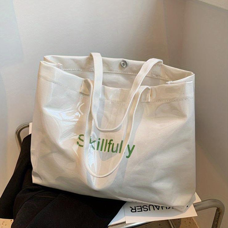 Clear Letter Print Tote Bag, Large Capacity Shoulder Bag, Waterproof Summer Beach Handbag